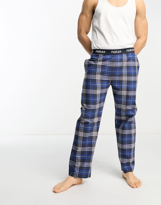 Pantalones de estar por casa azul oscuro a cuadros con logo en la cinturilla de Farah