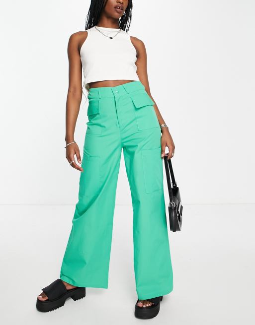 Pantalones cargo verdes utilitarios de pernera ancha de Fashionkilla (parte de un conjunto)