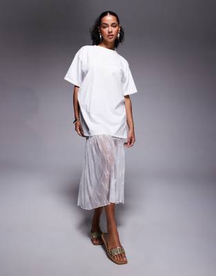 Vestido largo blanco estilo camiseta con bajo escalonado de encaje de algodón de Fashionkilla