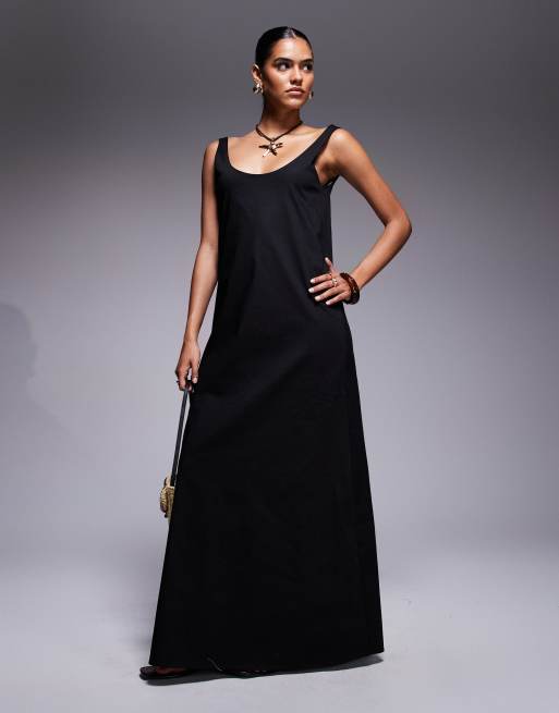Vestido largo negro de corte trapecio con cuello ancho de popelina de Fashionkilla