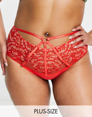 Braguitas rojo tomate de talle alto con detalle de encaje y rejilla Amore de Figleaves Curve