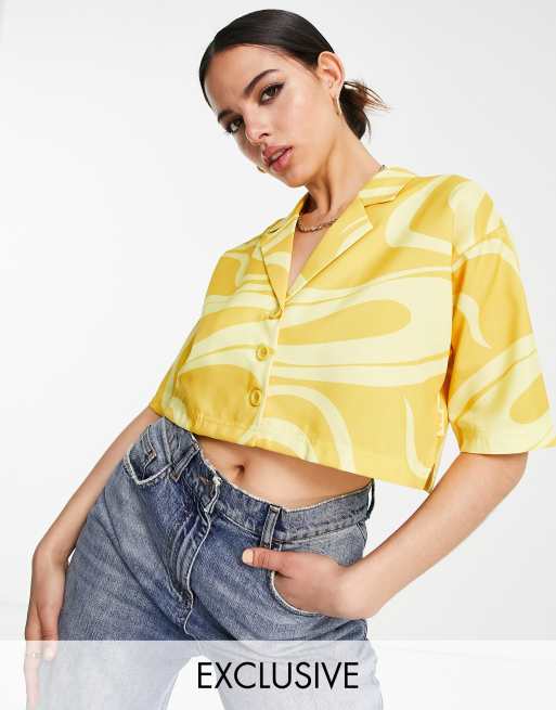 Camiseta corta amarilla con estampado de remolinos de Fila