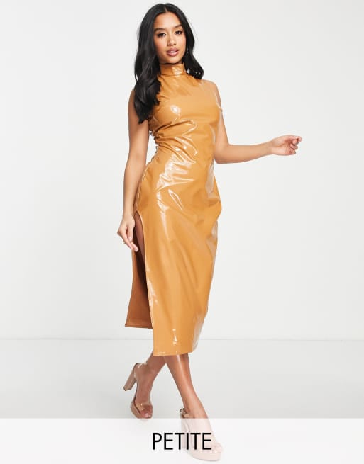 Vestido midi camel de vinilo de First Distraction The Label Petite