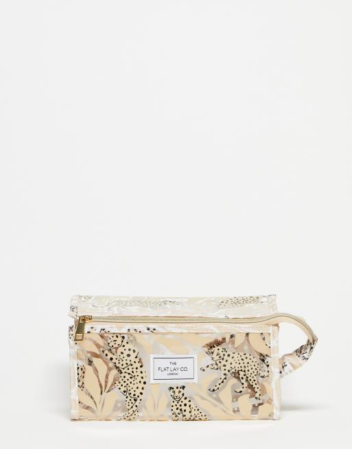 Neceser de maquillaje beis con estampado de guepardos de goma exclusivo de The Flat Lay Co. x ASOS