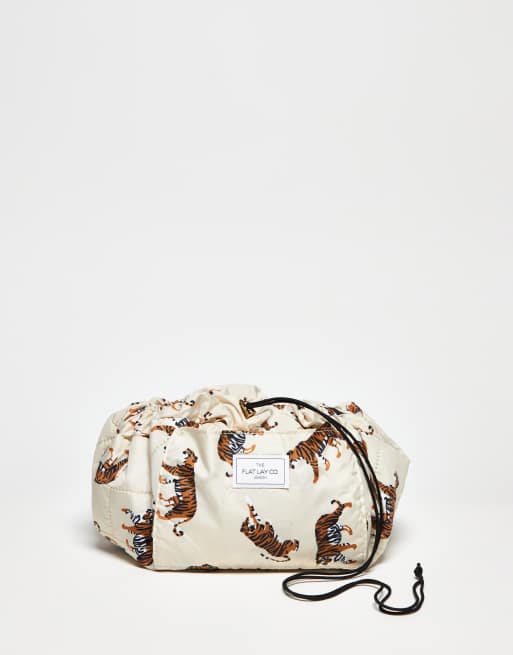 Neceser de maquillaje con cordón ajustable y estampado de de tigres de The Flat Lay Co.