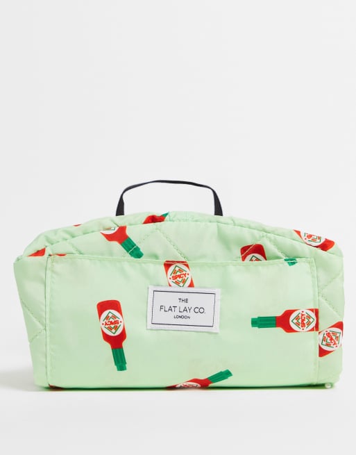 Neceser verde menta con estampado de salsa picante y cierre de cordón ajustable de The Flat Lay Co.