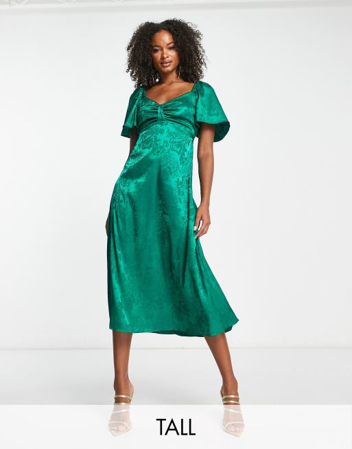 Vestido midi verde esmeralda con mangas fluidas de jacquard de satén de Flounce London Tall