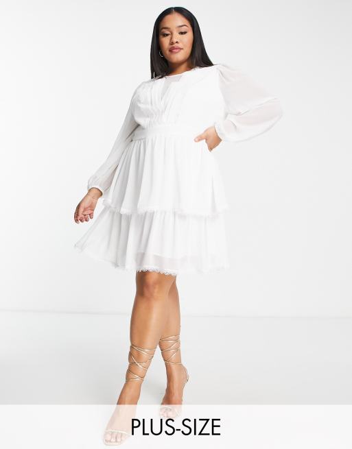Vestido corto blanco transparente con diseño escalonado y detalles de encaje de Forever New Curve