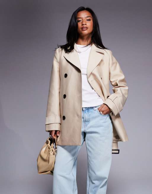 Gabardina corta beis con cinturón de Forever New Petite