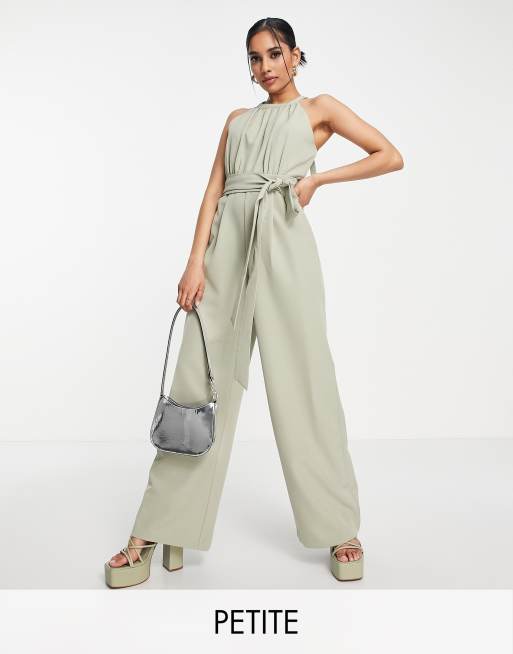 Mono largo caqui pálido con cuello halter de Forever New Petite