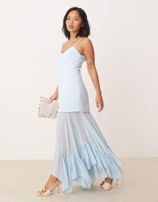 Vestido largo azul de tejido transparente de Forever New Petite