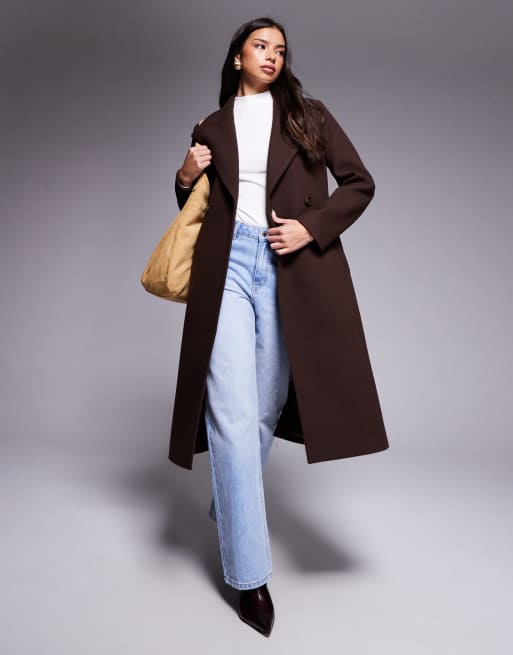 Abrigo de vestir marrón chocolate cálido cruzado de Forever New