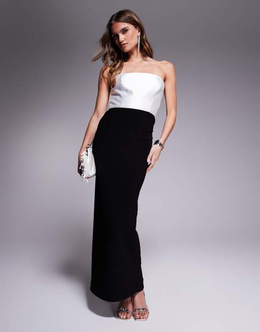 Vestido largo negro y blanco con diseño drapeado en contraste de Forever New