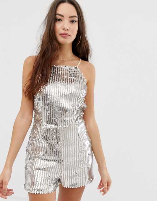 Mono corto de lentejuelas con escote cuadrado de Girl In Mind