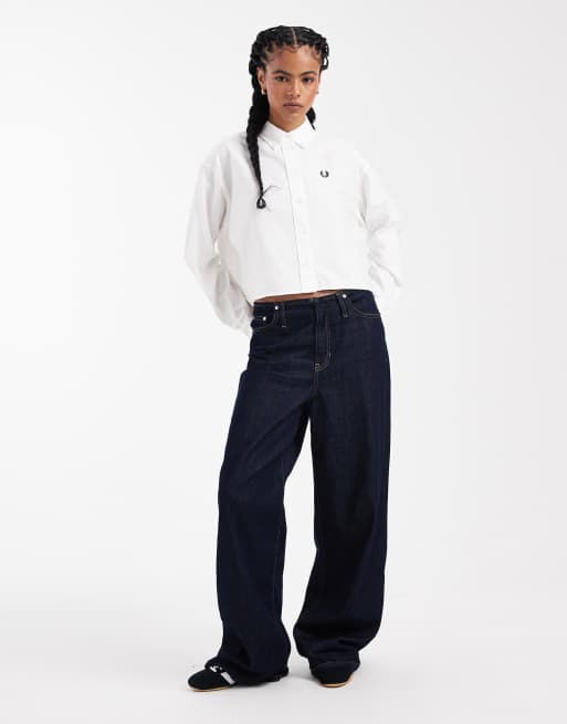 Camisa blanca abotonada de manga larga con logo de Fred Perry
