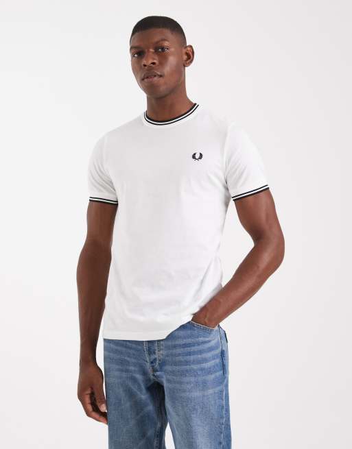 Camiseta blanca con dos rayas de Fred Perry