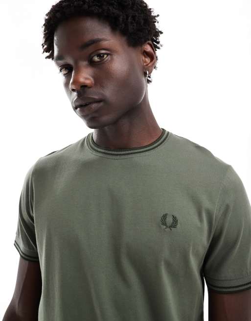 Camiseta caqui con ribetes dobles de Fred Perry