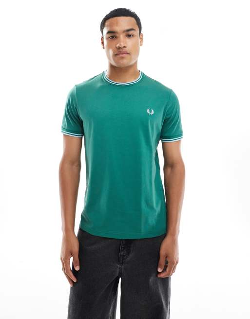 Camiseta con dos rayas en verde de Fred Perry