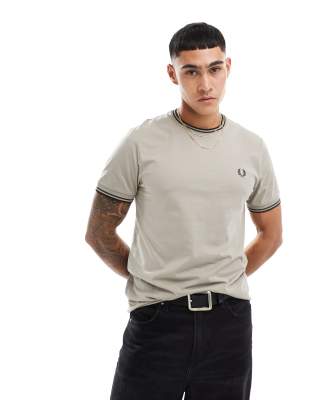 Camiseta gris claro con ribetes dobles de Fred Perry