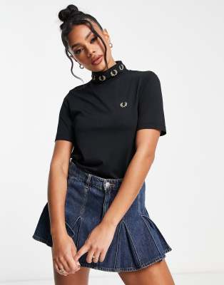 Camiseta negra con cuello alto de Fred Perry Laurel Wreath