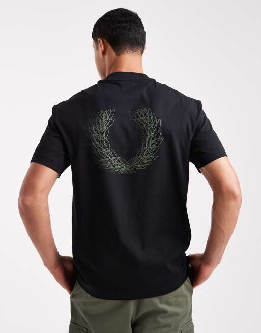Camiseta negra con estampado trasero y logo gráfico Light Box de Fred Perry