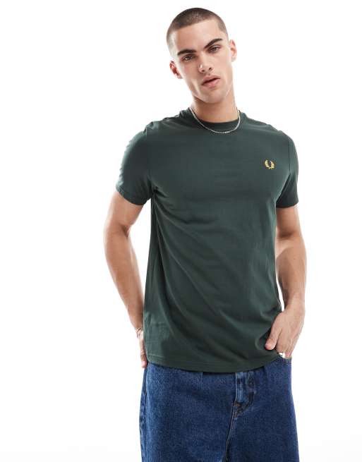 Camiseta verde con corona de laurel efecto empolvado de Fred Perry