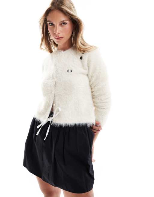 Cárdigan blanco de punto mullido de Fred Perry x Amy Winehouse