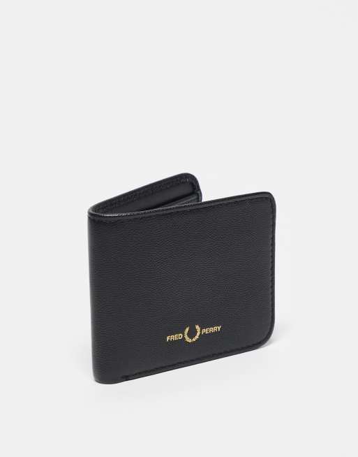 Cartera negra plegable de cuero Scotch Grain de Fred Perry