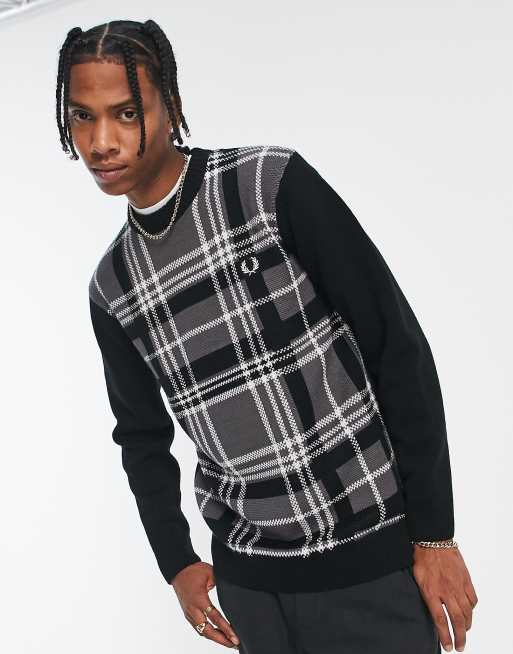 Jersey negro con paneles de cuadros escoceses de Fred Perry