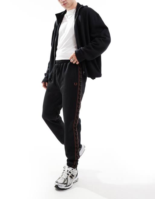 Joggers de chándal negros con detalle de cinta en contraste de Fred Perry (parte de un conjunto)