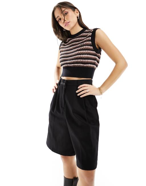 Pantalones cortos negros de corte alargado de sarga de Fred Perry