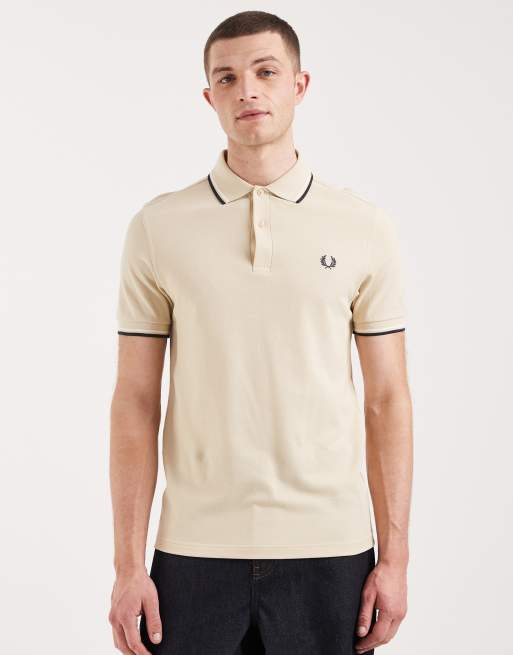 Polo beis claro con ribetes dobles y logo de Fred Perry