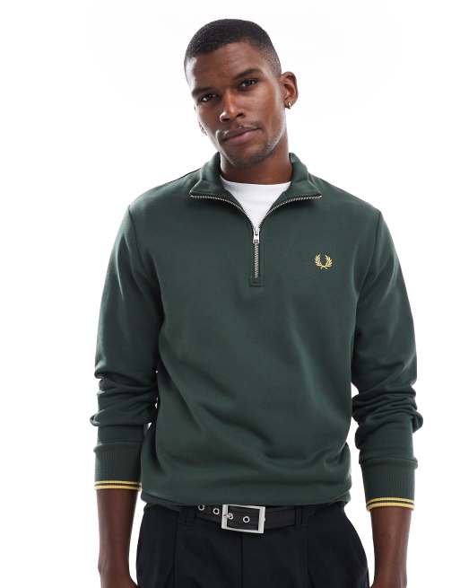 Sudadera verde con media cremallera de Fred Perry