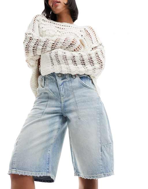 Boardshorts vaqueros por la rodilla con lavado azul claro de Free People