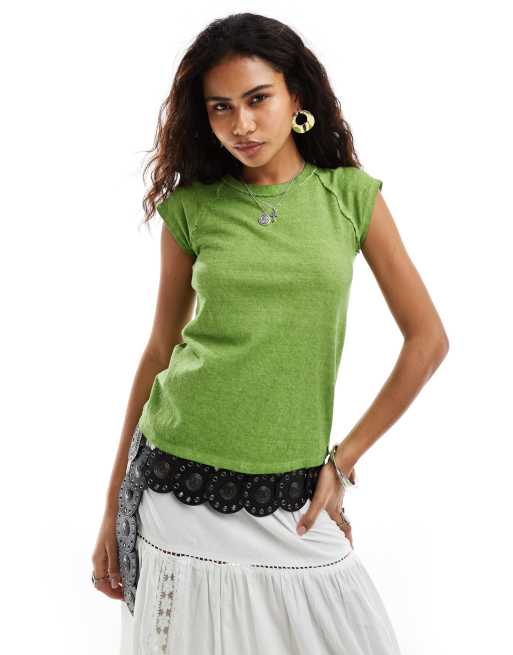 Camiseta verde lavado con diseño encogido y mangas raglán de Free People