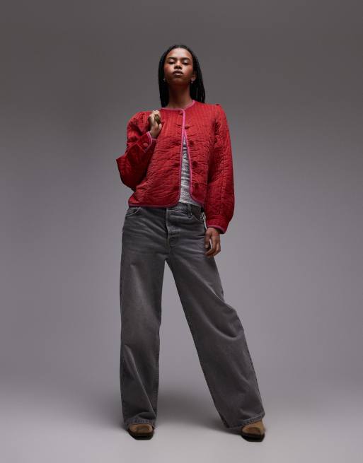 Chaqueta rojo rubí guateada con mangas globo de Free People