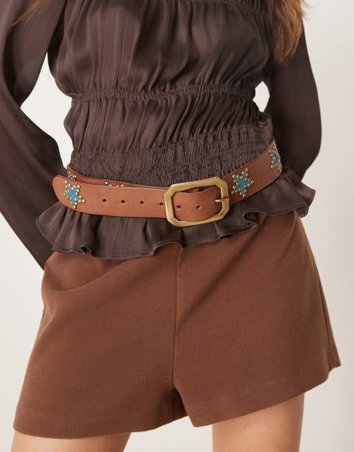 Cinturón color bronce envejecido de cuero con estrellas de tachuelas de Free People