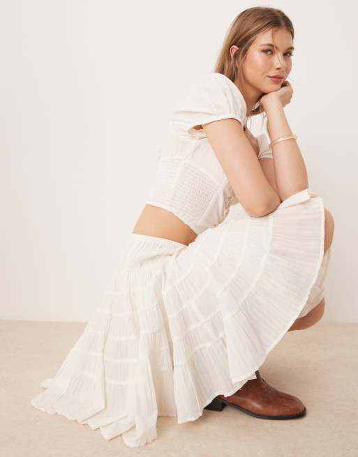 Falda por la rodilla blanco marfil pulcro escalonada de estilo boho de Free People