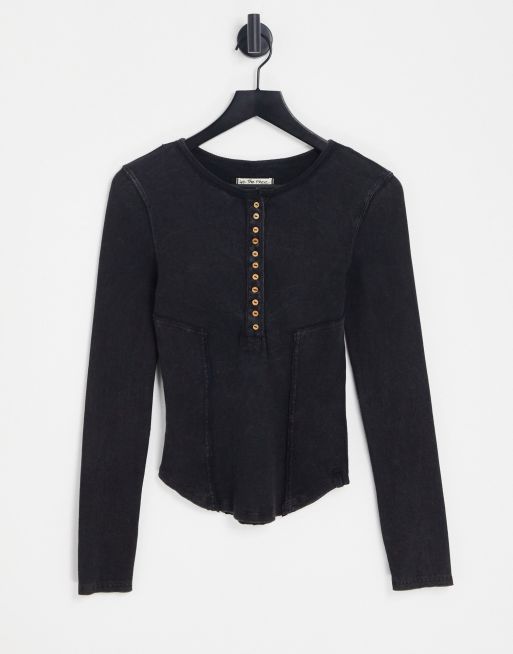 Top negro ácido de manga larga con cuello panadero Mareera de Free People