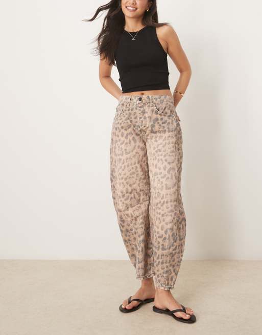 Vaqueros beis de pernera barrel con estampado de leopardo Good Luck de Free People