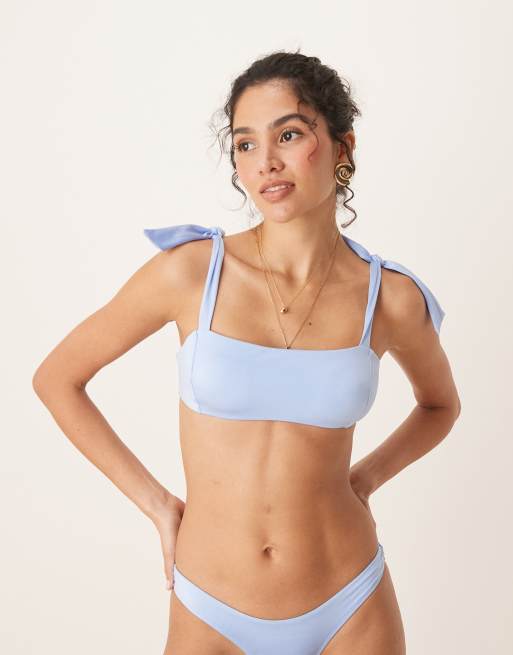 Top de bikini azul cielo con tirantes anudados de Free Society