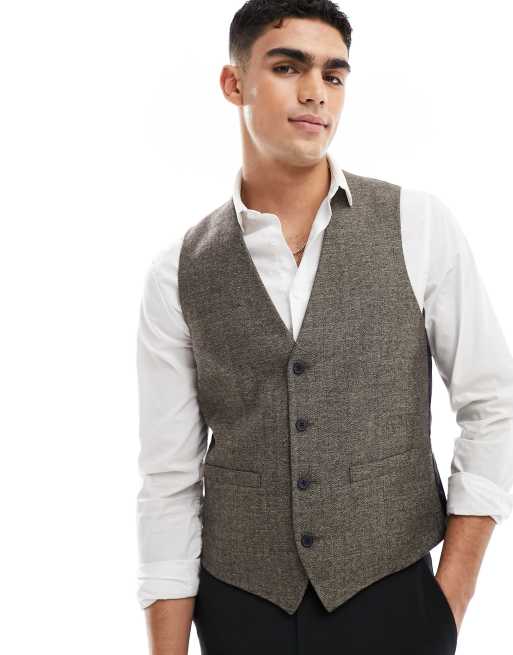 Chaleco de traje tostado de tejido de espiguilla de French Connection