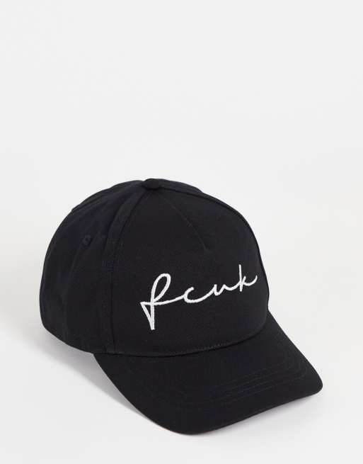 Gorra de béisbol negra con logo de texto FCUK de French Connection