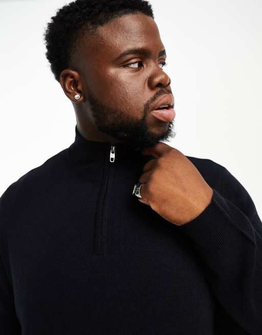 Jersey azul marino de tacto suave con media cremallera de French Connection Plus