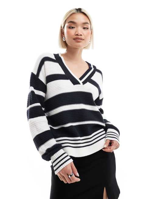Jersey blanco y azul marino a rayas con diseño universitario y cuello de pico de French Connection