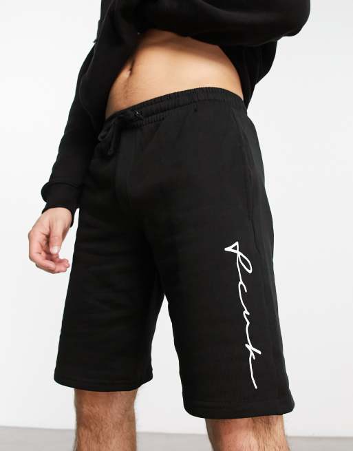 Pantalones cortos negros de punto con detalle de texto en el lateral de FCUK
