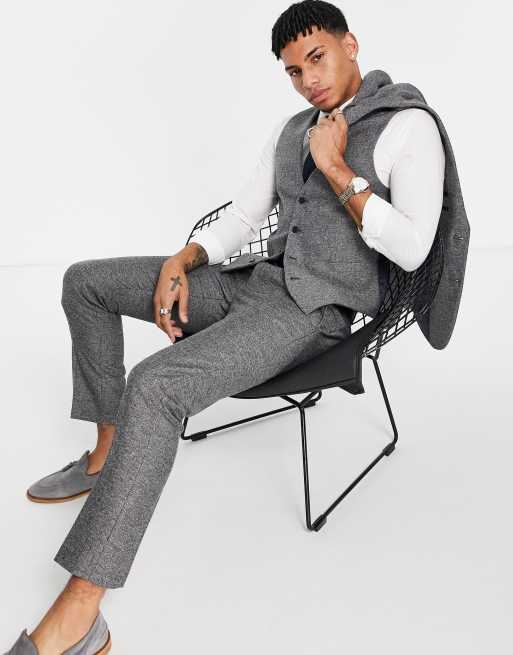 Pantalones de traje de corte slim de tejido de espiga de French Connection