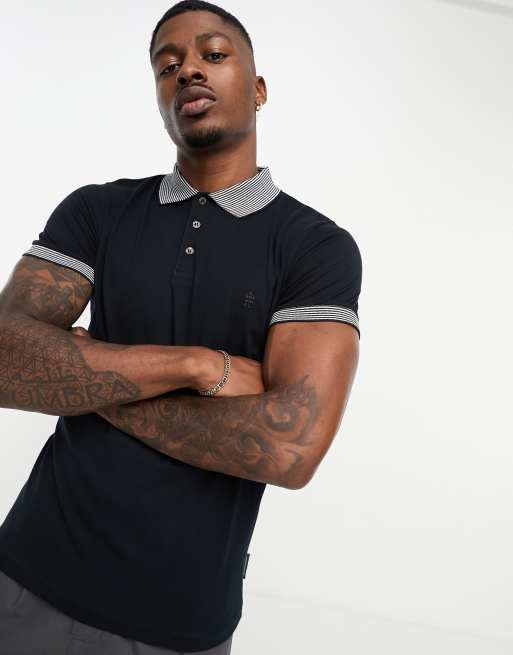 Polo azul marino con cuello a rayas de French Connection