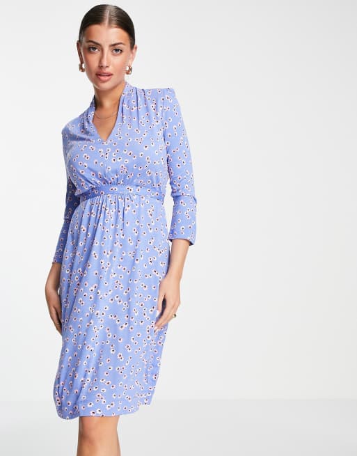 Vestido azul con lazada en la cintura y diseño estampado de punto Eloise de French Connection