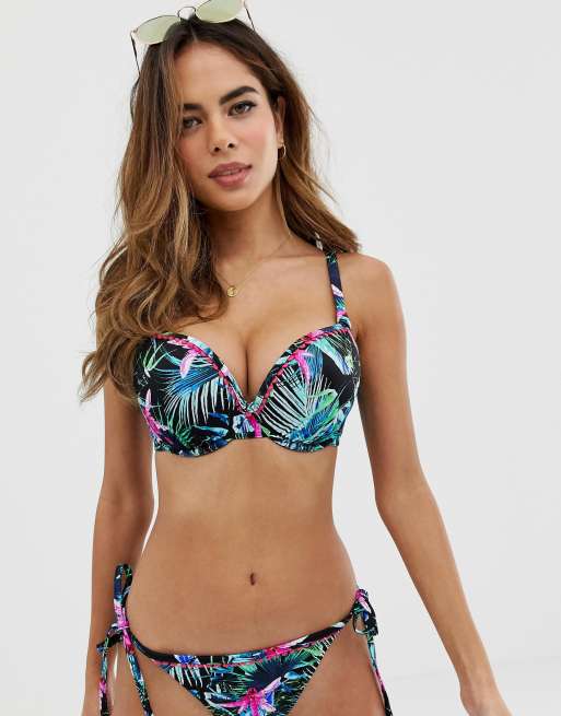 Top de bikini palabra de honor con aros y estampado floral estilo jungla de Freya Fuller Bust